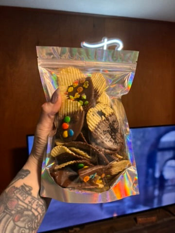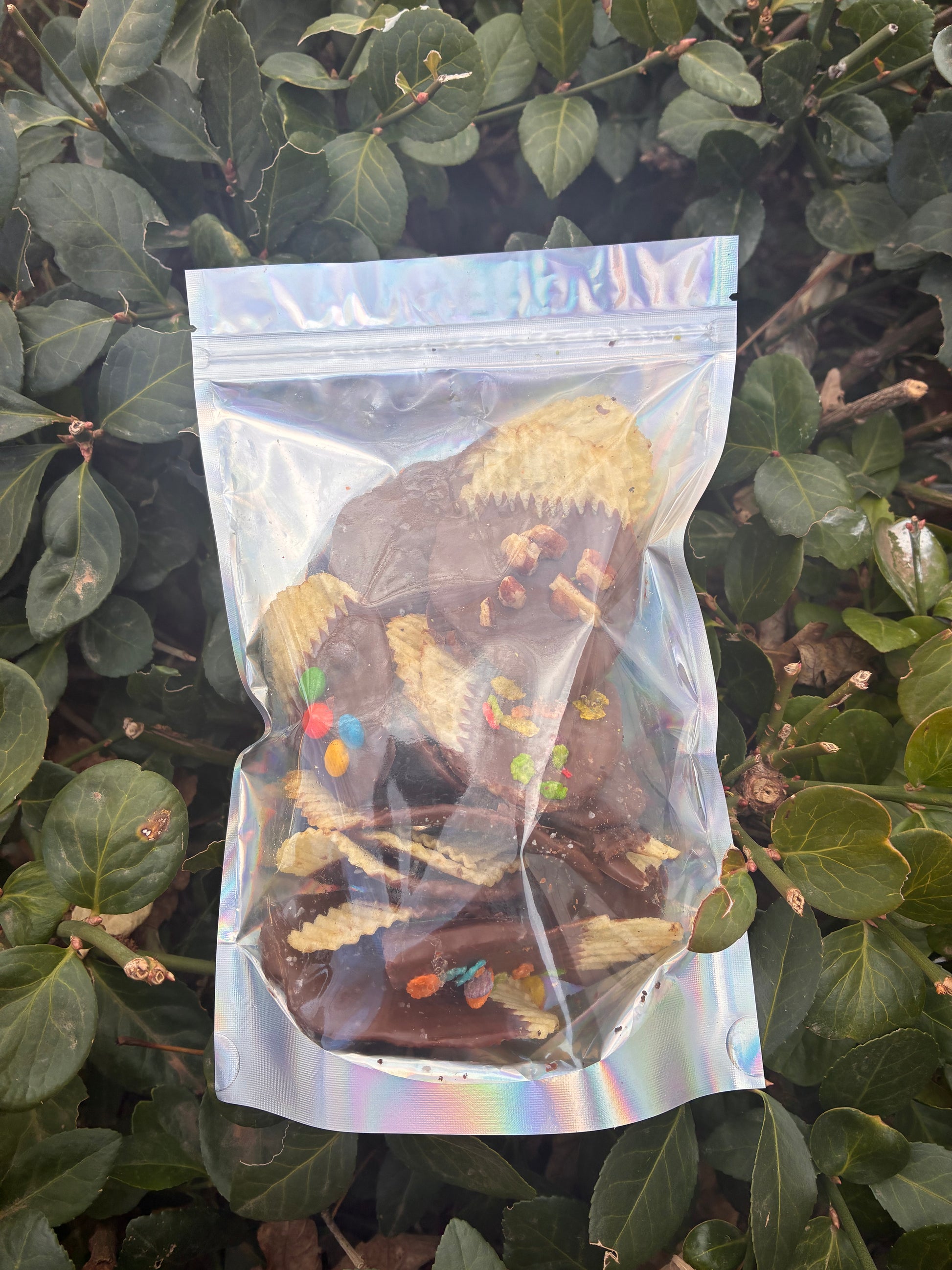 Our Chocolate Covered Potato Chips are crispy, crunchy, and dipped in smooth chocolate, then finished with a variety of toppings like candy pieces, cookie crumbles, and drizzles for that “I can’t stop eating these” vibe.